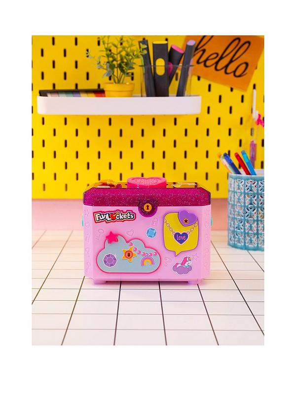 It's time for fun with FunLockets! Unlock the surprises and discover the secrets in this stylish and novel jewellery box. Comes with so many additions; there's even a place to record your own secret voice message and play it back whenever you want. You can change your message as often as you like too. This lockable box is a great addition to a stylish bedroom.